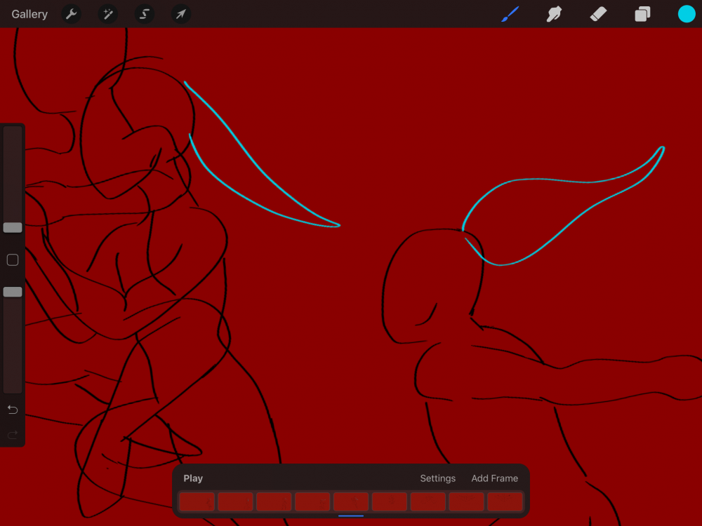 after the storyboard was completed, I created a new layer over every frame and traced cleaner linework over it. Something I would do differently is use an app that is designed specifically for animation: Procreate is not really designed for this kind of work