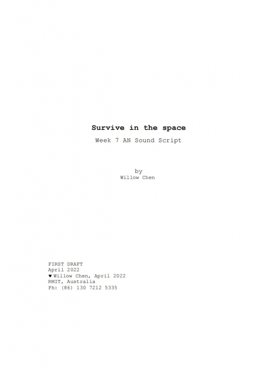This script demonstrates ideas of sound that can unfold a story through time. By using the sound hierarchy such as atmospherics, sound effects associated with actions, and dialogues of the main character and off-screen character, I am able to display the plot's location and the main character's internal aspects. Through these diegetic and non-diegetic sounds, the story is unpacked.
